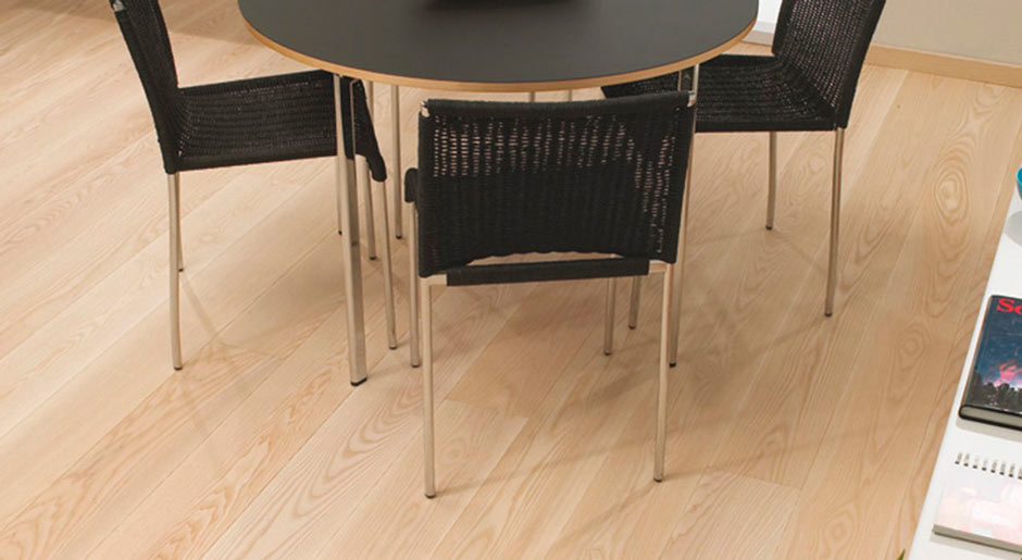 Flot plankegulv i ask fra Timberman. Et plankegulv en flot matlakeret overflade og multiclick låsesystem for nem og hurtig montering.